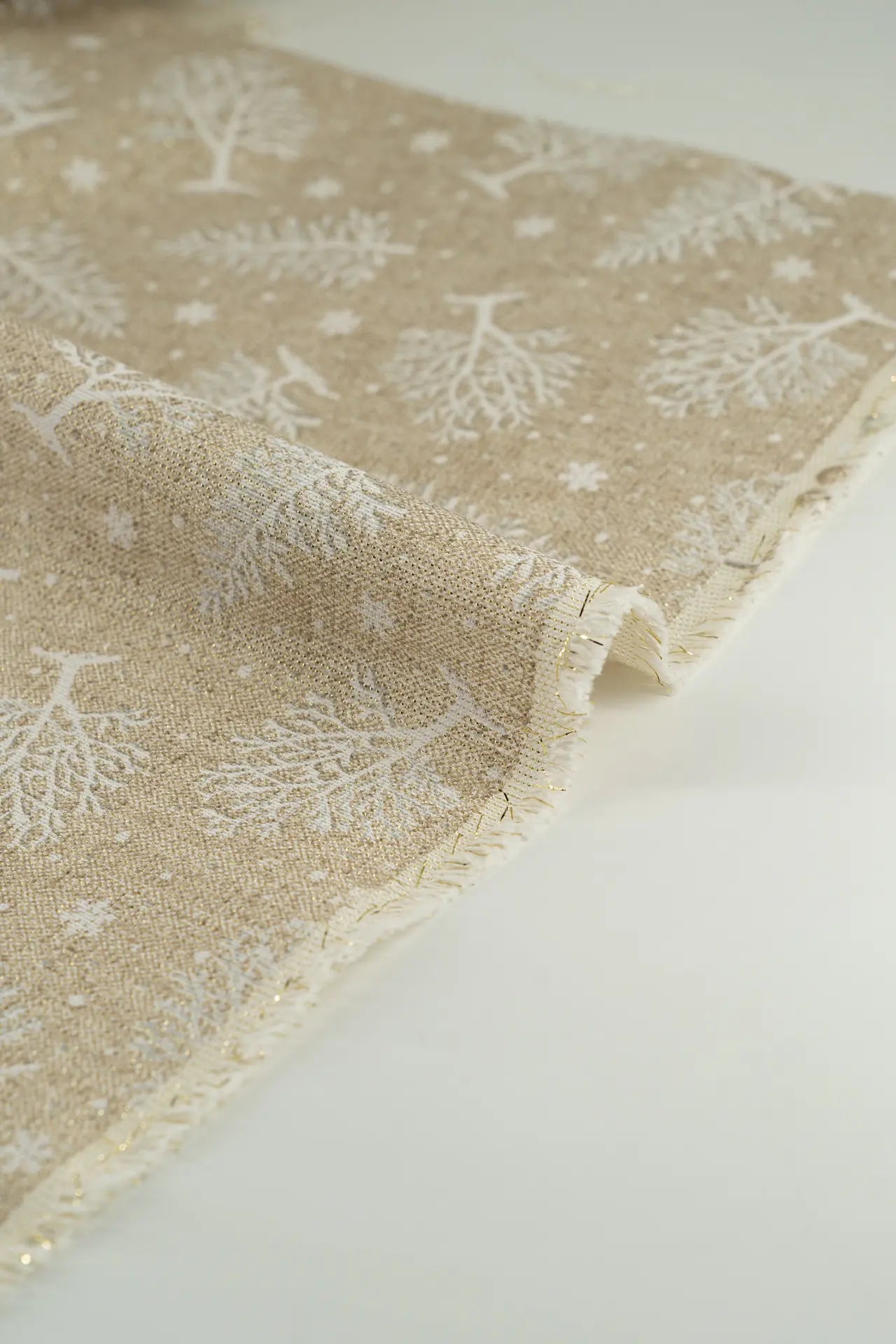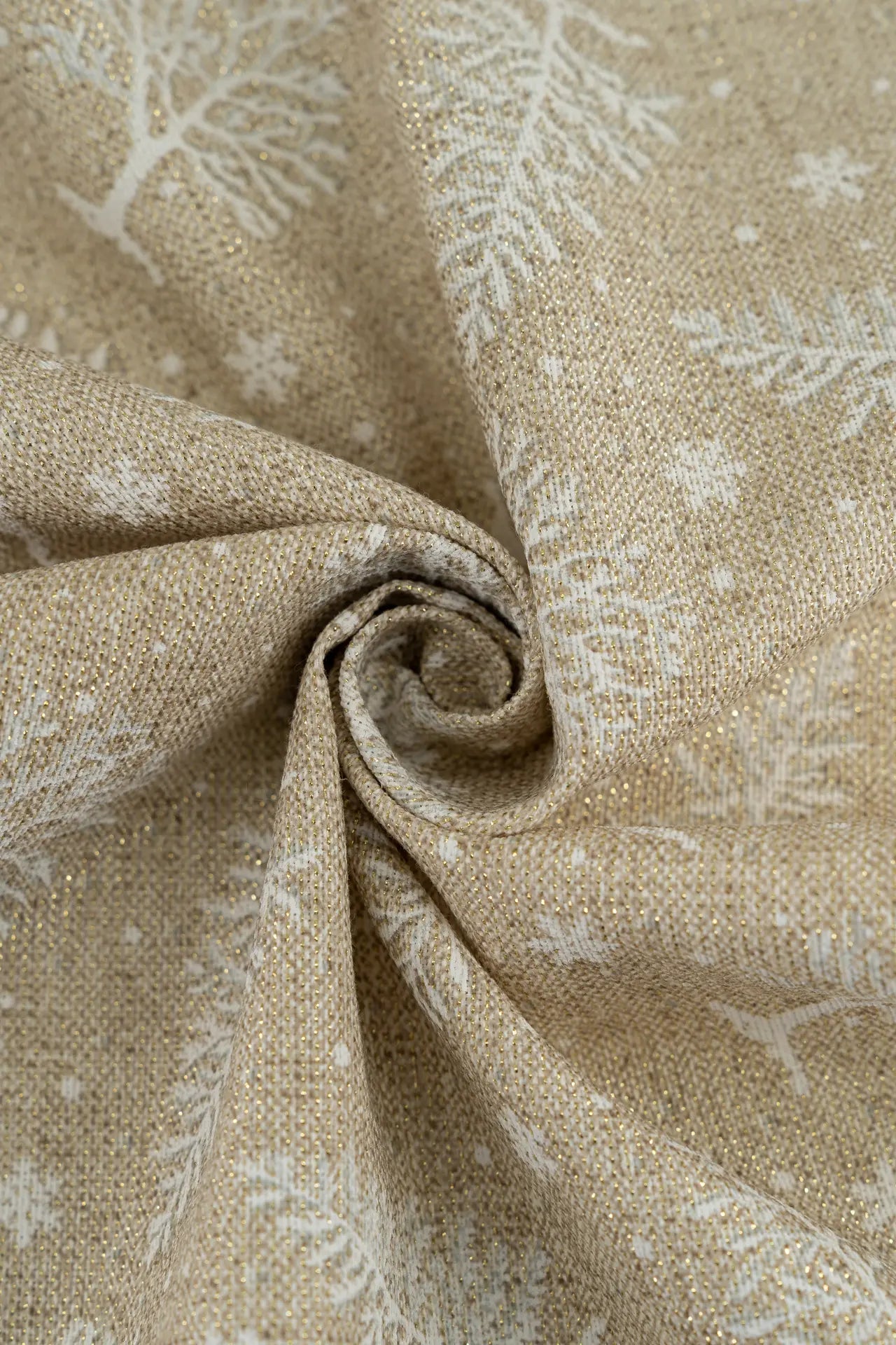 Tejido de loneta confeccionado en algodón y poliéster estampado mediante impresión digital y acabado lurex, colección navidad 2026