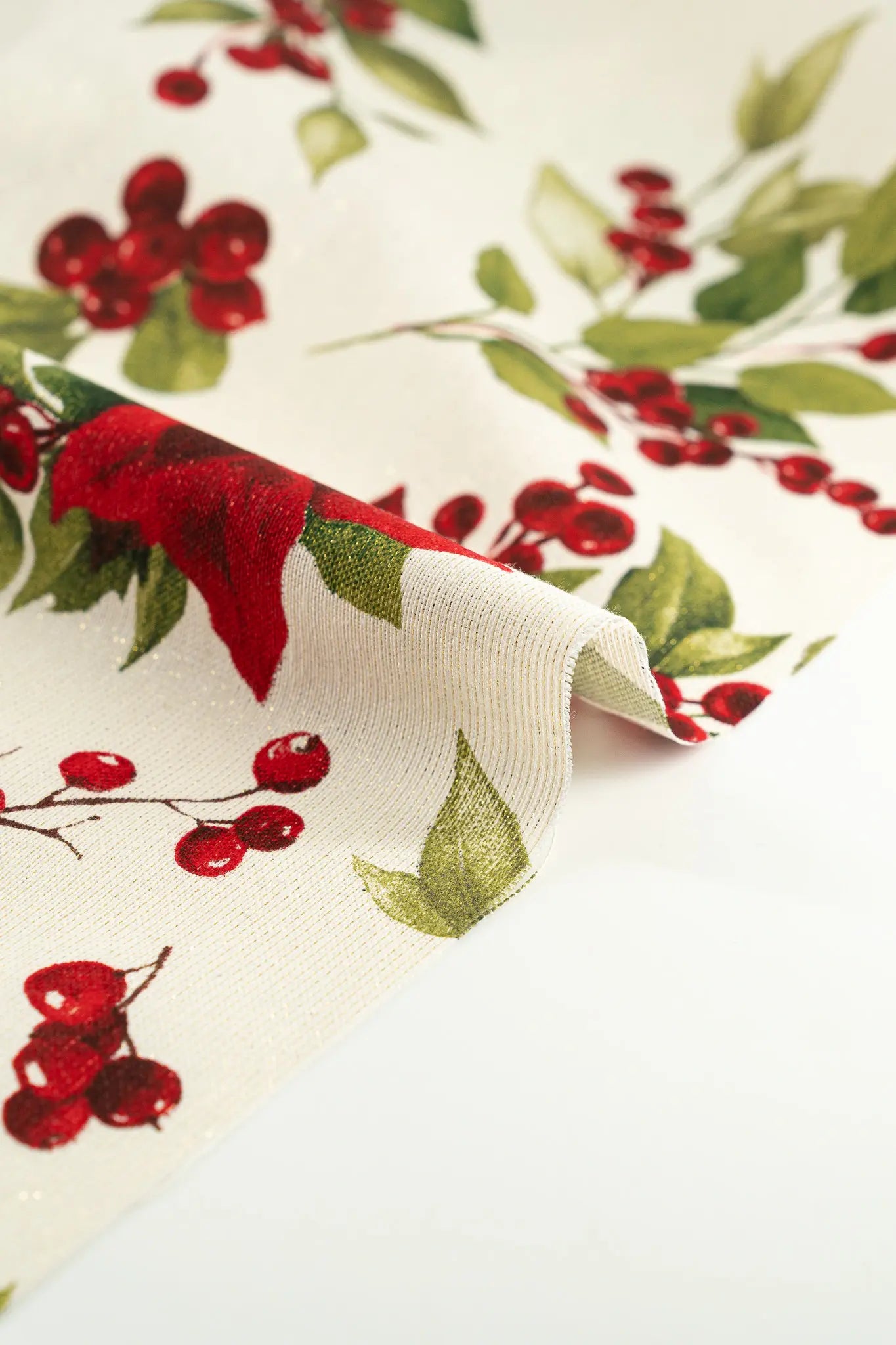 Tejido de loneta confeccionado en algodón y poliéster estampado mediante impresión digital y acabado lurex, colección navidad 2026