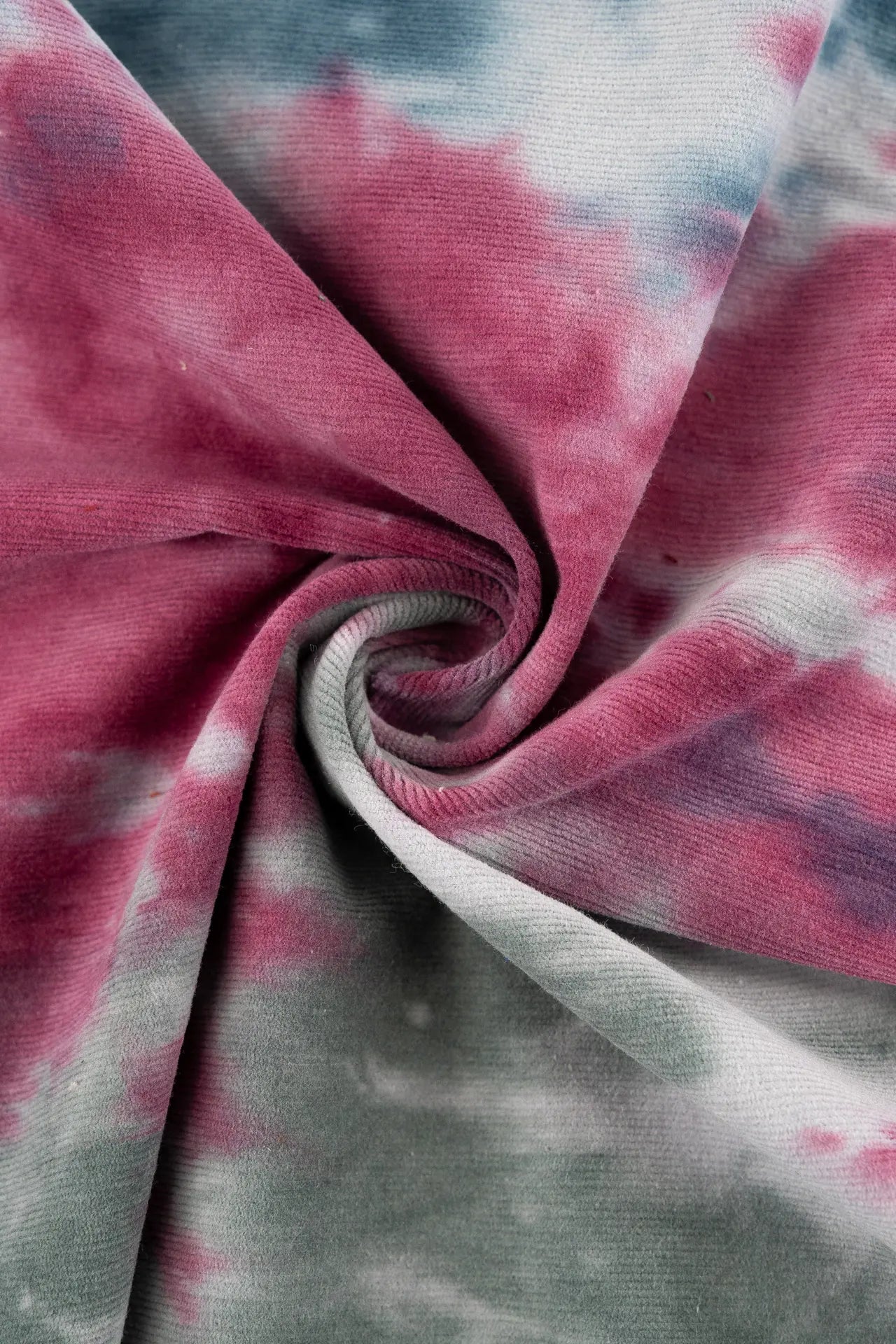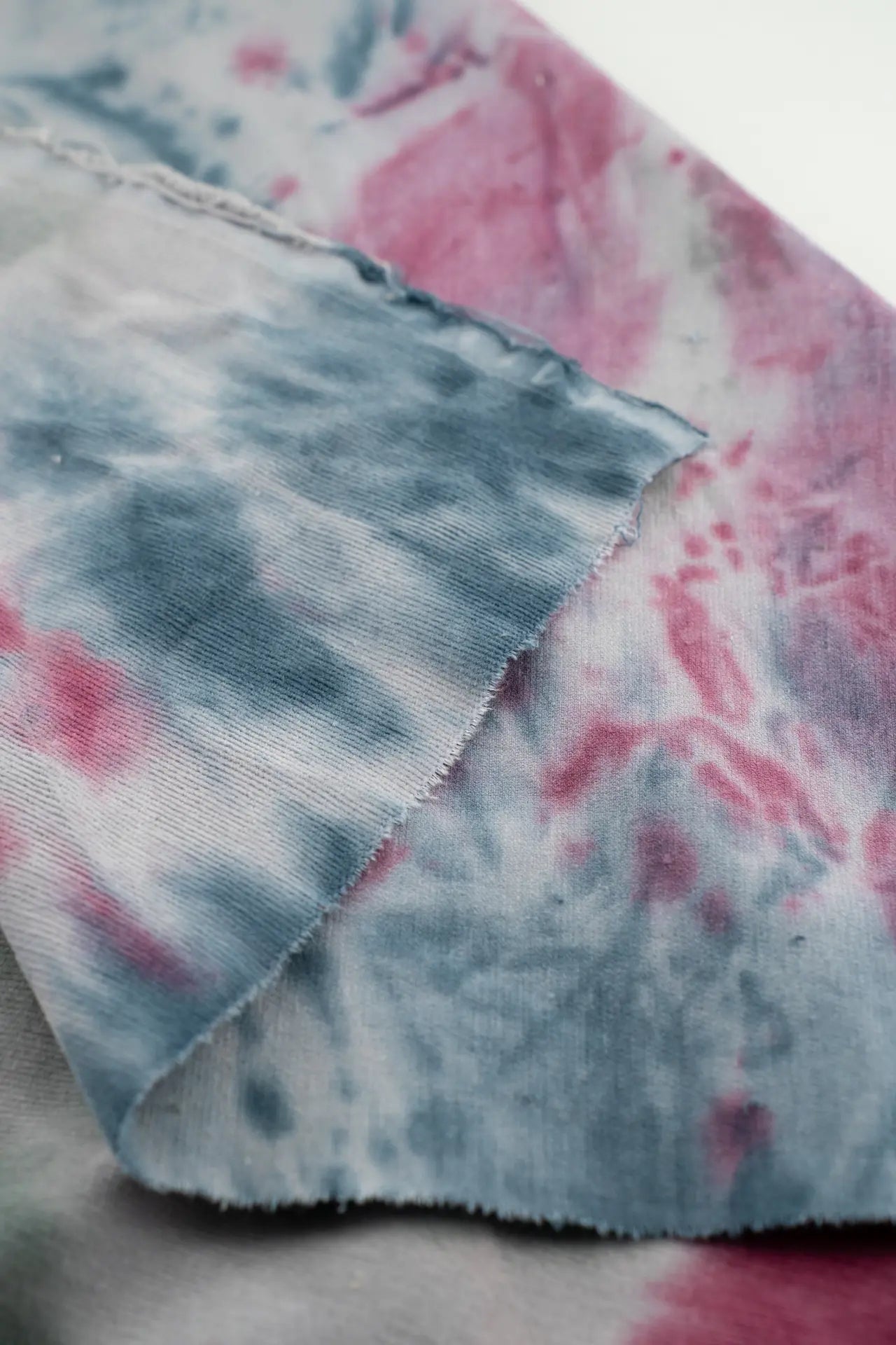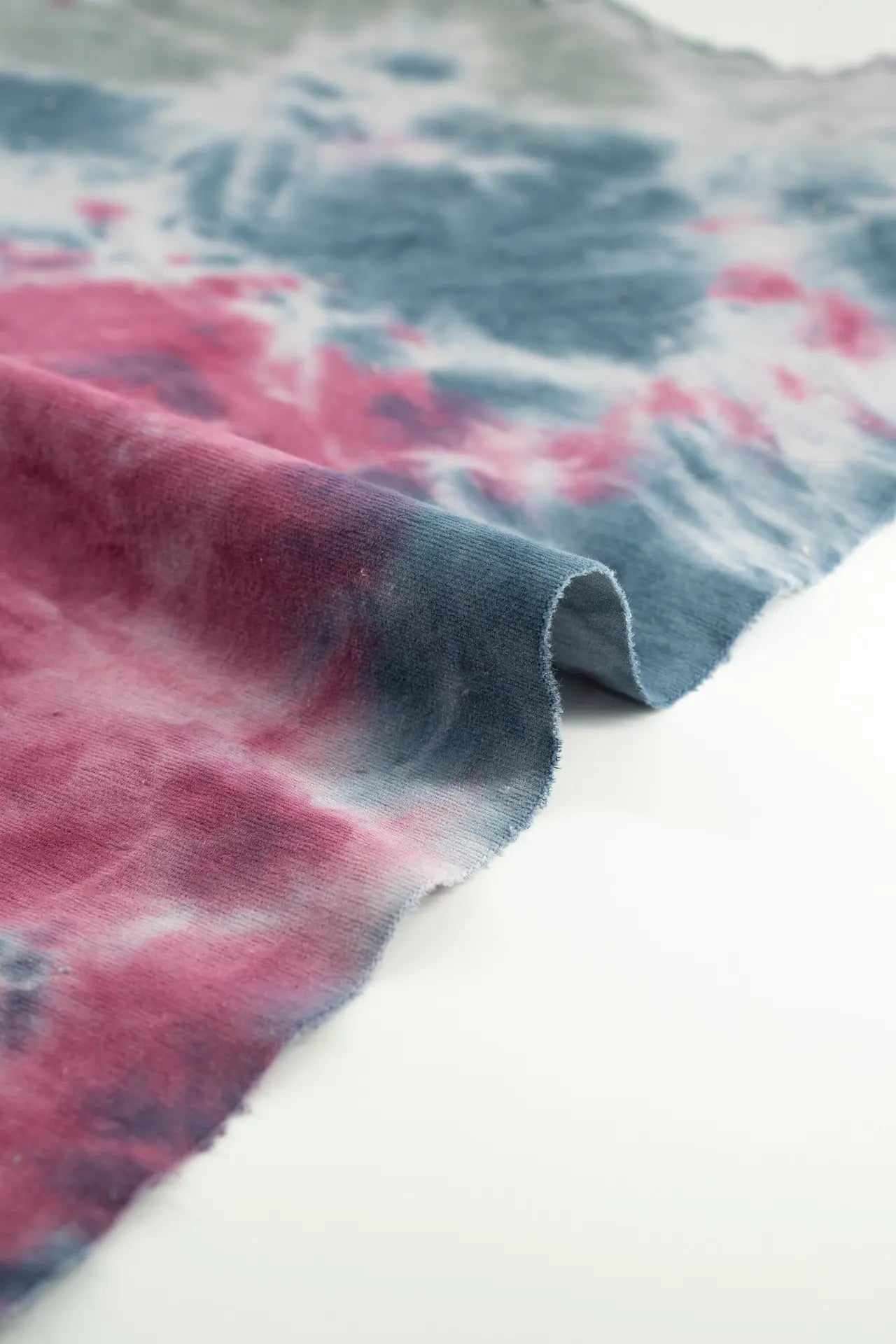 TEJIDO DE PANA CONFECCIONADO EN ALGODÓN, VISCOSA Y ELASTANO, EN COLOR FUCSIA Y CON EFECTO TIE DYE