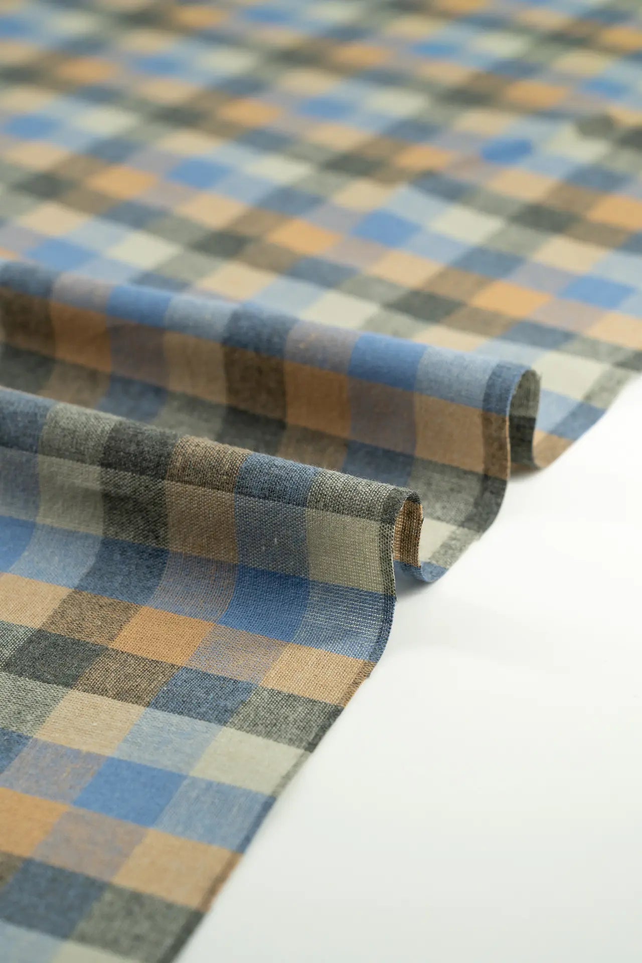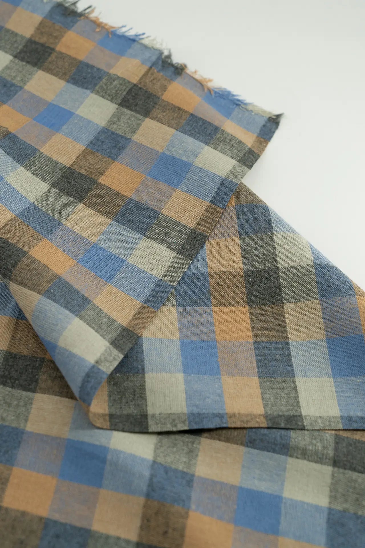 Tejido punto de jersey confeccionado en algodón orgánico con estampado de cuadros