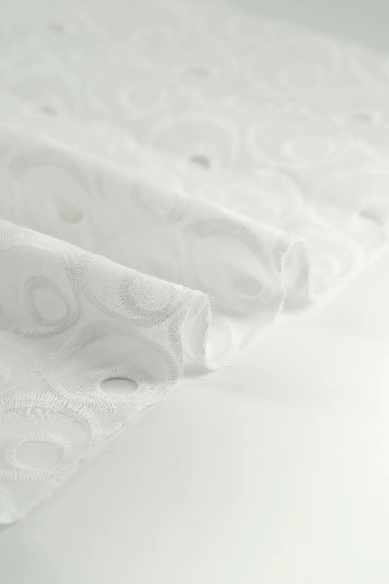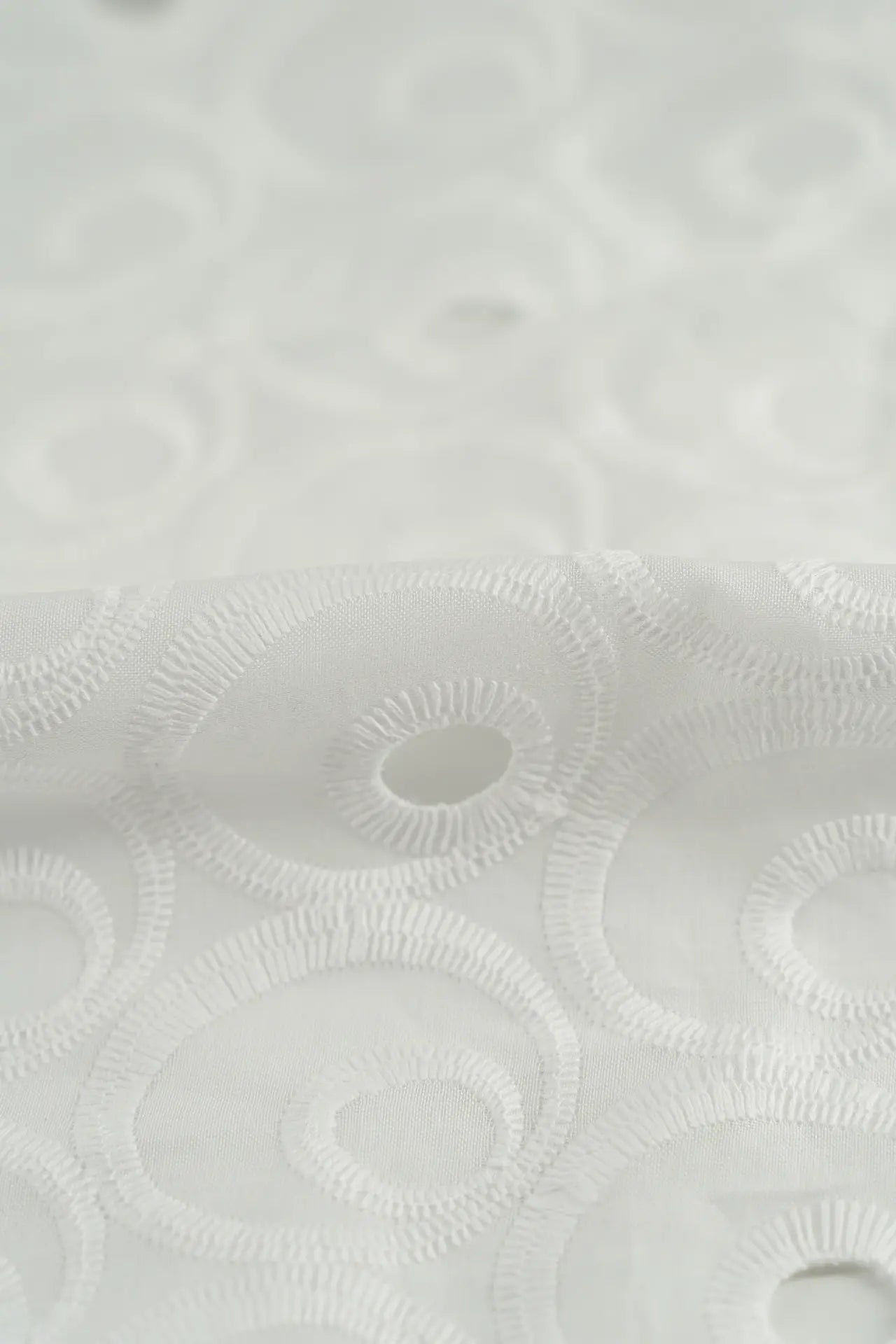 Tejido perforado confeccionado en algodón, con motivos organizcistas