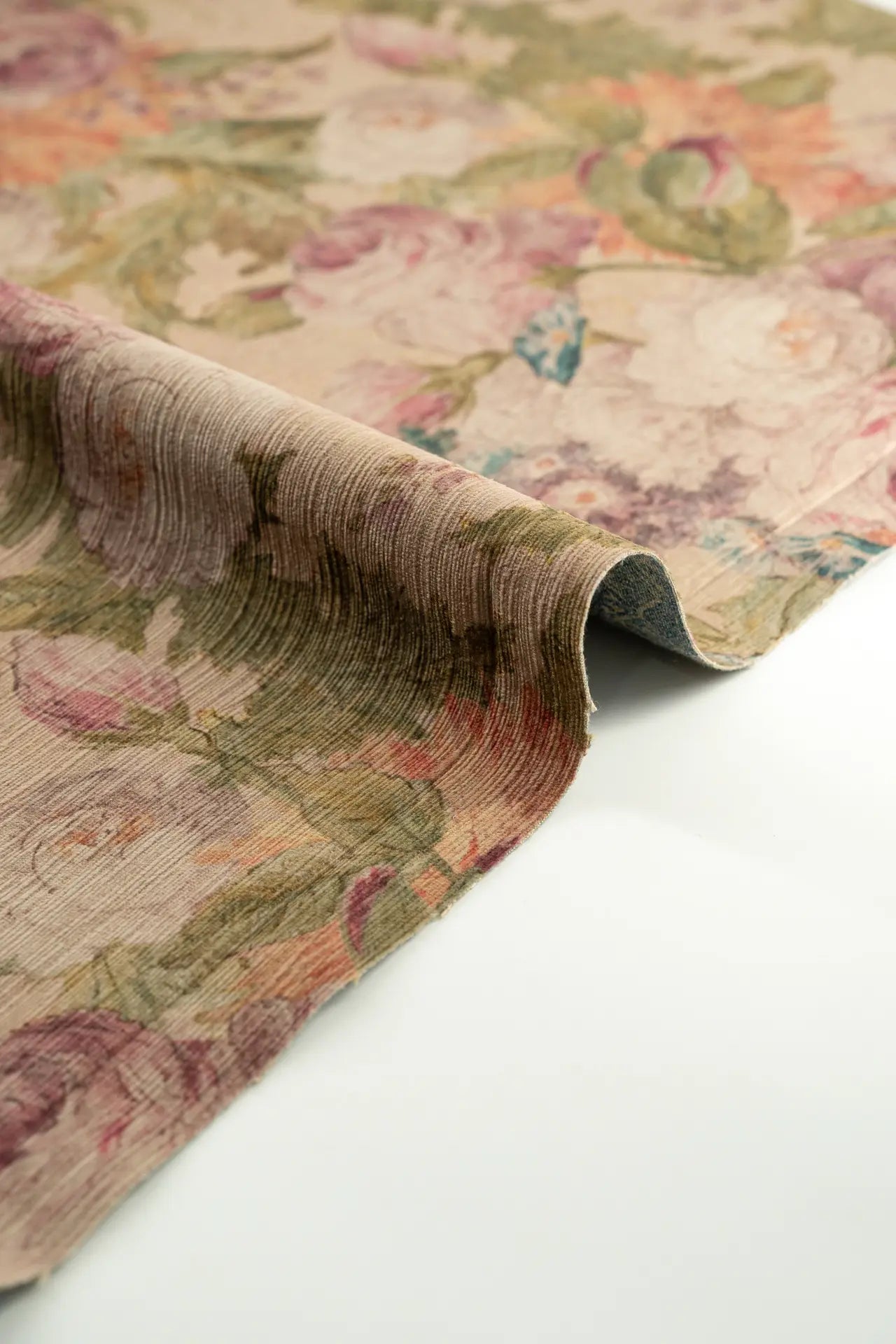 Tejido con tratamiento antimanchas, confeccionado en algodón reciclado y fibras de cadena largfa, 60.000 ciclos martindale, con una densidad de urdimbre 71 y trama 37, teste de pilling grado 4/5, resistencia a la tracción urdimbre 650 n, trama 697 n,