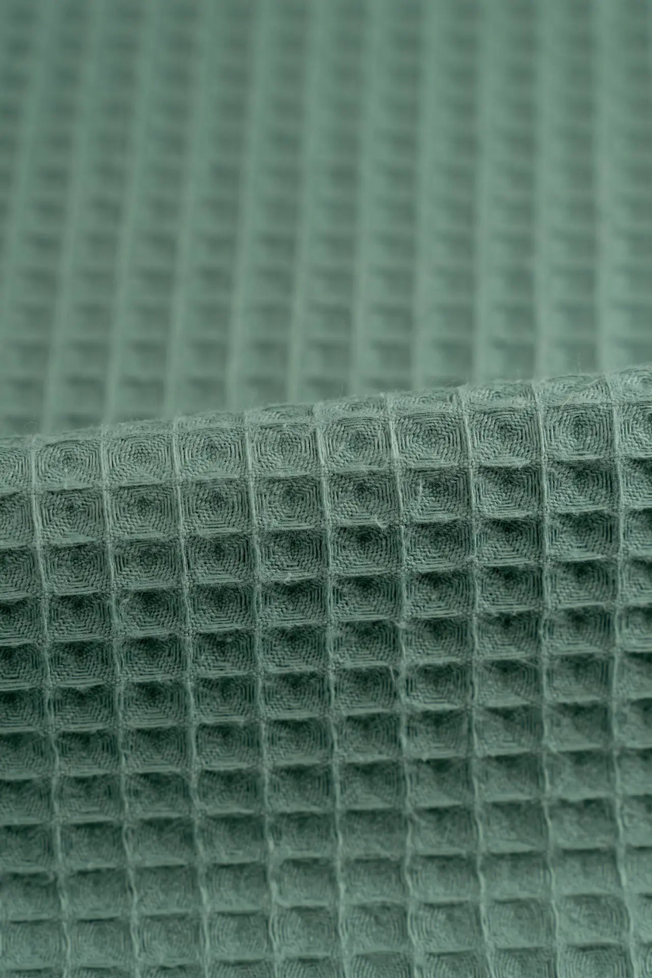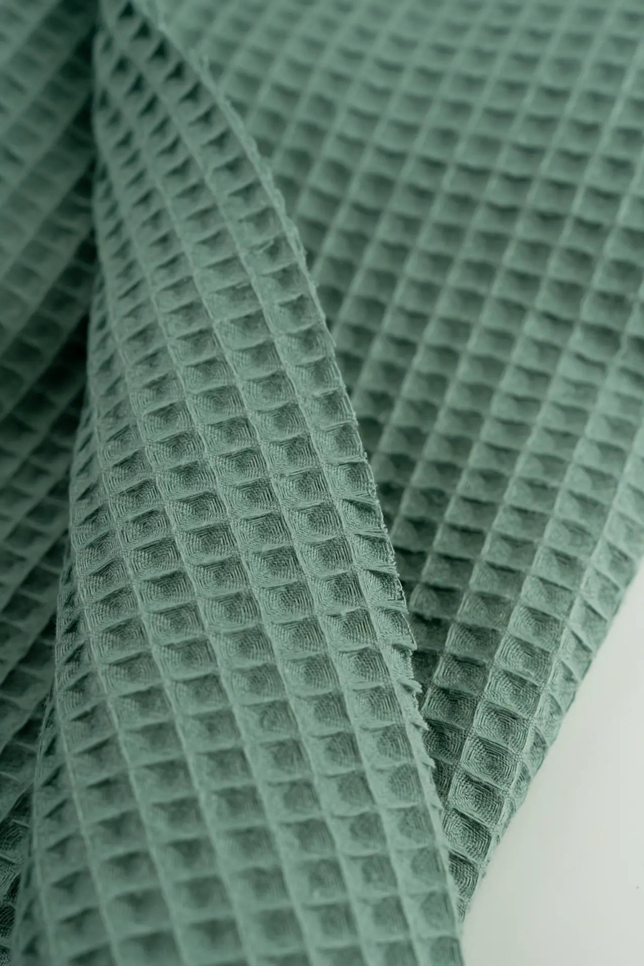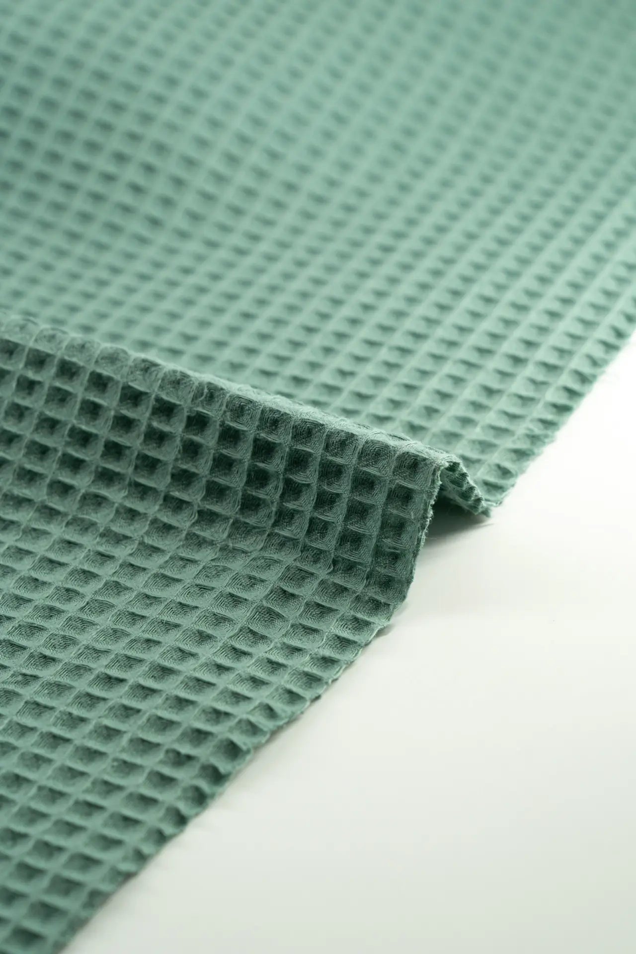 Knitted waffle confeccionado en algodón en algodón gots y ligeramente elástico, el tejido forma una estructura que lo hace especialmente suave